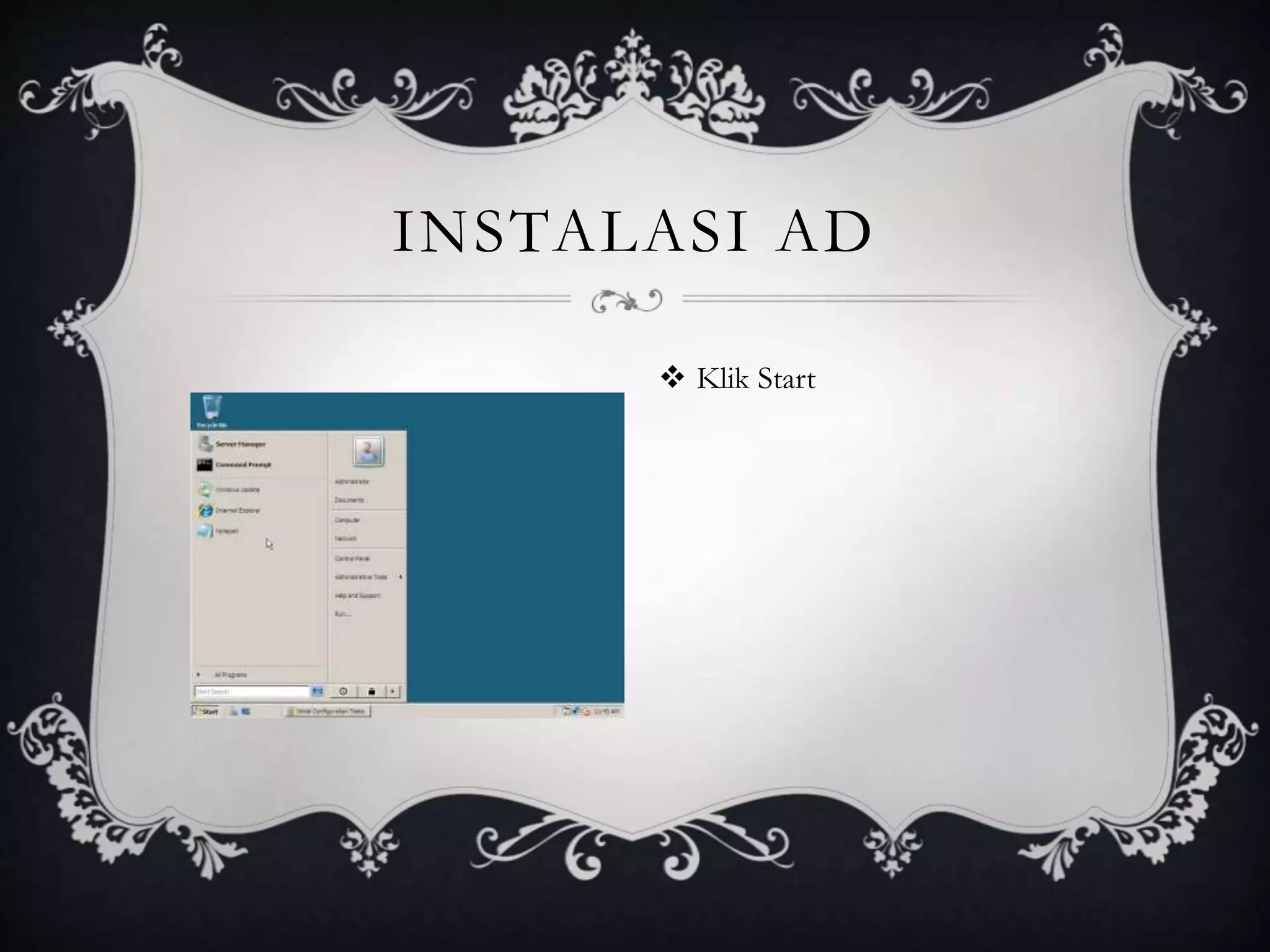 Dokumen ini menjelaskan langkah-langkah instalasi Active Directory di Windows Server, dimulai dari pengaturan server manager hingga restart setelah instalasi selesai. Proses termasuk pemilihan roles, konfigurasi domain, dan penginstallan DNS server. Setelah instalasi, pengguna dapat memverifikasi hasil di administrative tools.