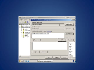 Dokumen ini menjelaskan langkah-langkah untuk menginstal dan mengonfigurasi Active Directory pada Windows Server 2003, termasuk pembuatan domain, pengaturan DNS, serta pengelolaan pengguna dan grup. Selain itu, dibahas juga tentang fitur-fitur Active Directory seperti domain, trusts, dan replikasi. Informasi disajikan dengan detail untuk memudahkan pemahaman dalam konfigurasi dan manajemen Active Directory.