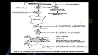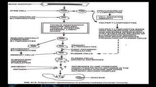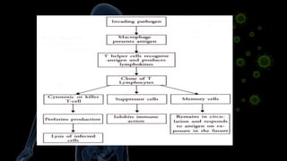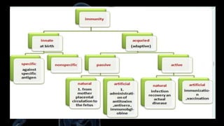 The document provides a comprehensive overview of immunity, detailing its definitions, types, and mechanisms. It distinguishes between innate and acquired immunity, explaining their characteristics, including specificity and memory, and describes the roles of lymphocytes and other immune cells. It also covers active immunity, both natural and artificial, along with the processes of humoral and cell-mediated immune responses, highlighting the importance of vaccines and the immune system's function in disease resistance.
