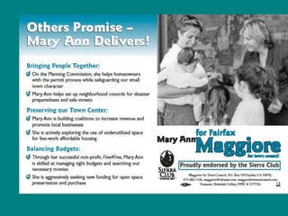 This document provides guidance on developing an effective grassroots political campaign. It outlines steps to take such as setting priorities and goals, creating a timeline, developing a budget, framing messages, recruiting and managing volunteers, lobbying officials, using various activist tactics, dealing with press, creating campaign materials, fundraising, and researching your opposition. Specific suggestions are given for tasks like phone banking, letter writing, hosting events, and public hearings. The overall aim is to strategically plan and execute a grassroots campaign to advance your issue.