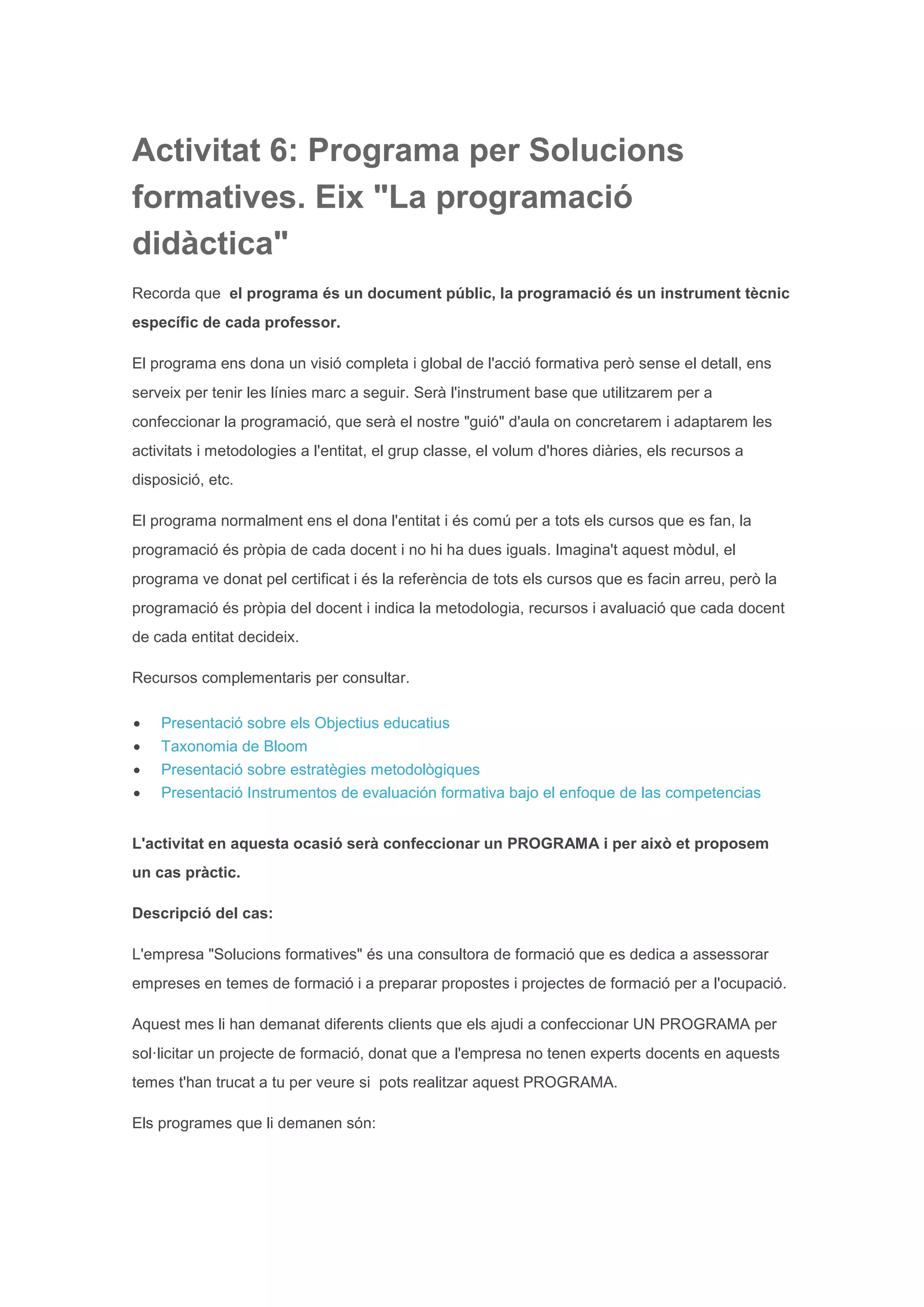 El programa ens dona un visió completa i global de l'acció formativa però sense el detall, ens