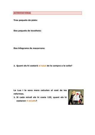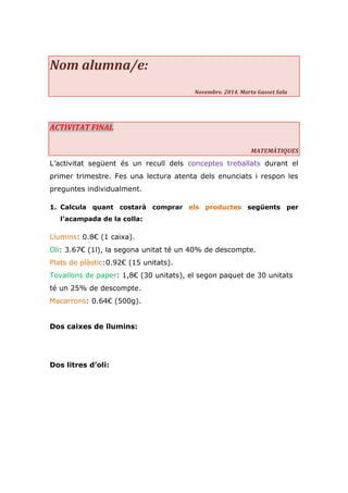 1. Calcula quant costarà comprar els productes següents per l’acampada de la colla: