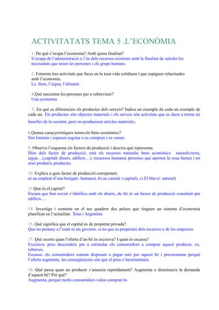 ACTIVITATATS TEMA 5.L’ECONÒMIA