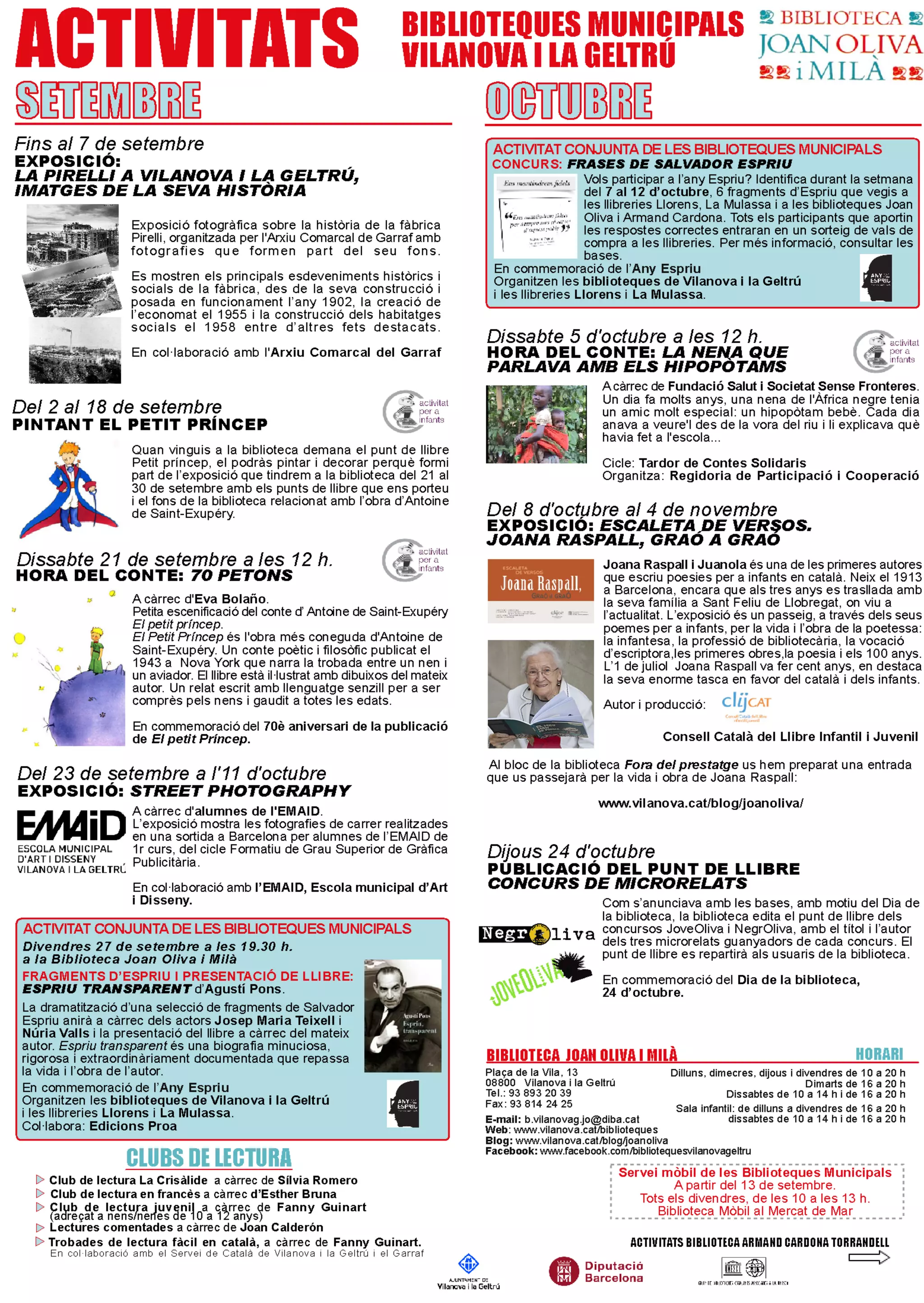 Activitats a la Biblioteca Joan Oliva i Milà - setembre-octubre 2013