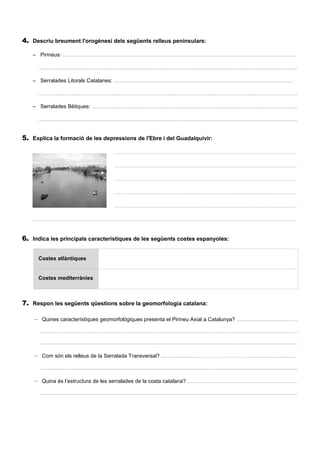 7. Respon les següents qüestions sobre la geomorfologia catalana: