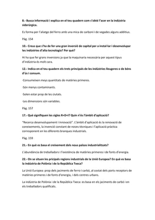 12.- Indica en el teu quadern els trets principals de les indústries lleugeres o de béns