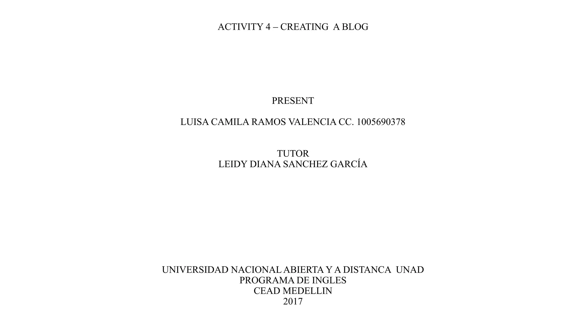The document provides instructions and examples for creating a blog, including defining phrasal verbs, discussing modal verbs of advice and obligation, describing future tenses, giving examples of tag questions, and presenting a map of the 3 units in an English course. It also includes a student's self-introduction with name, location, studies, hobbies, favorite sport and food.