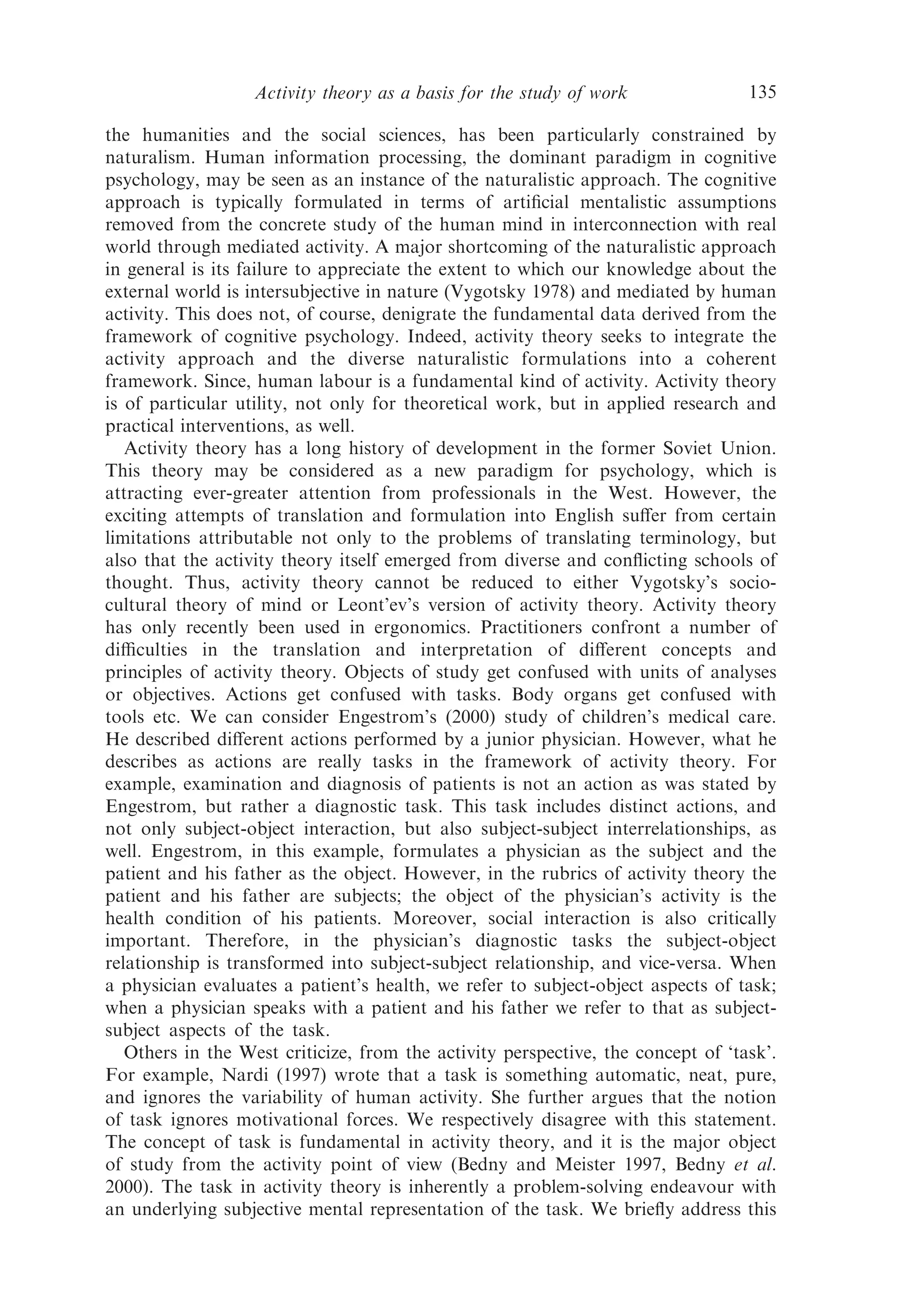 This document summarizes the key concepts of activity theory and discusses some limitations in how activity theory has been interpreted and applied in Western contexts. It begins by explaining that activity theory views human development and knowledge as arising through mediated activity rather than direct experiences as the naturalistic approach holds. It then discusses some issues with how concepts in activity theory have been confused or misinterpreted by Western scholars, such as confusing actions with tasks. The document aims to clarify these concepts to facilitate a better understanding and application of activity theory.