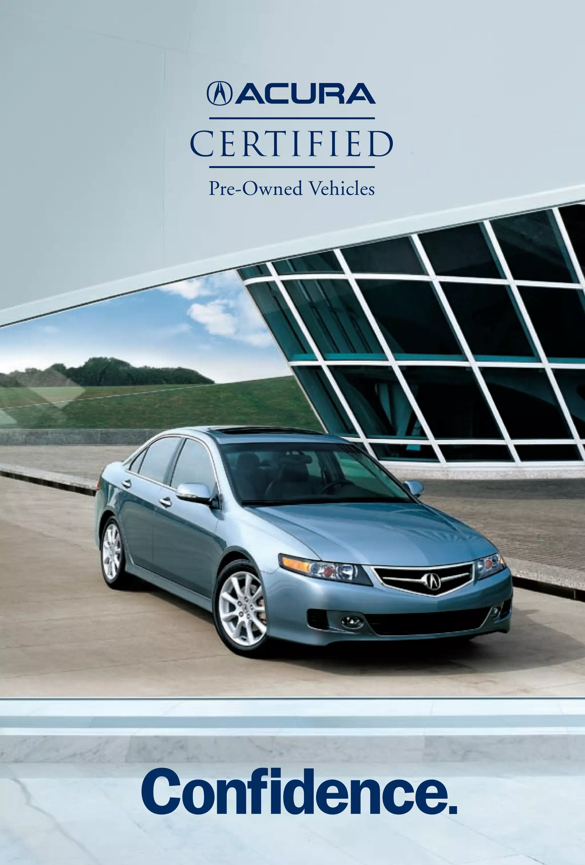 This document summarizes the certification and warranty programs for Acura certified pre-owned vehicles. It discusses that Acura certified vehicles undergo a rigorous 150-point inspection and reconditioning process. They also come with an extensive warranty, including a 7 year/100,000 mile powertrain warranty and additional roadside assistance benefits. Purchasers can also extend coverage further with an optional extended protection plan.