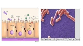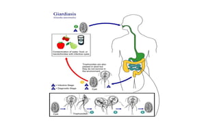 This document discusses acute diarrhea in children. It defines diarrhea and lists its leading causes as enterotoxigenic E. coli, enteroinvasive bacteria like Shigella and Salmonella, rotavirus, Vibrio cholerae, and Giardia lamblia. It describes the mechanisms by which these pathogens cause diarrhea and outlines their clinical presentations. The document also covers factors that increase susceptibility to diarrhea, effects of dehydration, evaluation of patients, management of rehydration, and treatment for specific causes.