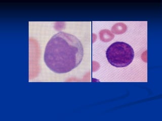Acute leukemias are cancers of the blood and bone marrow characterized by an overproduction of immature white blood cells. There are two main types: acute myeloid leukemia (AML) involving myeloid cells, and acute lymphoblastic leukemia (ALL) involving lymphoblasts. AML and ALL are classified according to cell morphology, immunophenotyping, genetics, and other lab findings. Common symptoms include fatigue, bleeding, and infections due to low blood cell counts. The document discusses the definitions, types, causes, diagnostic criteria, and clinical manifestations of acute leukemias.