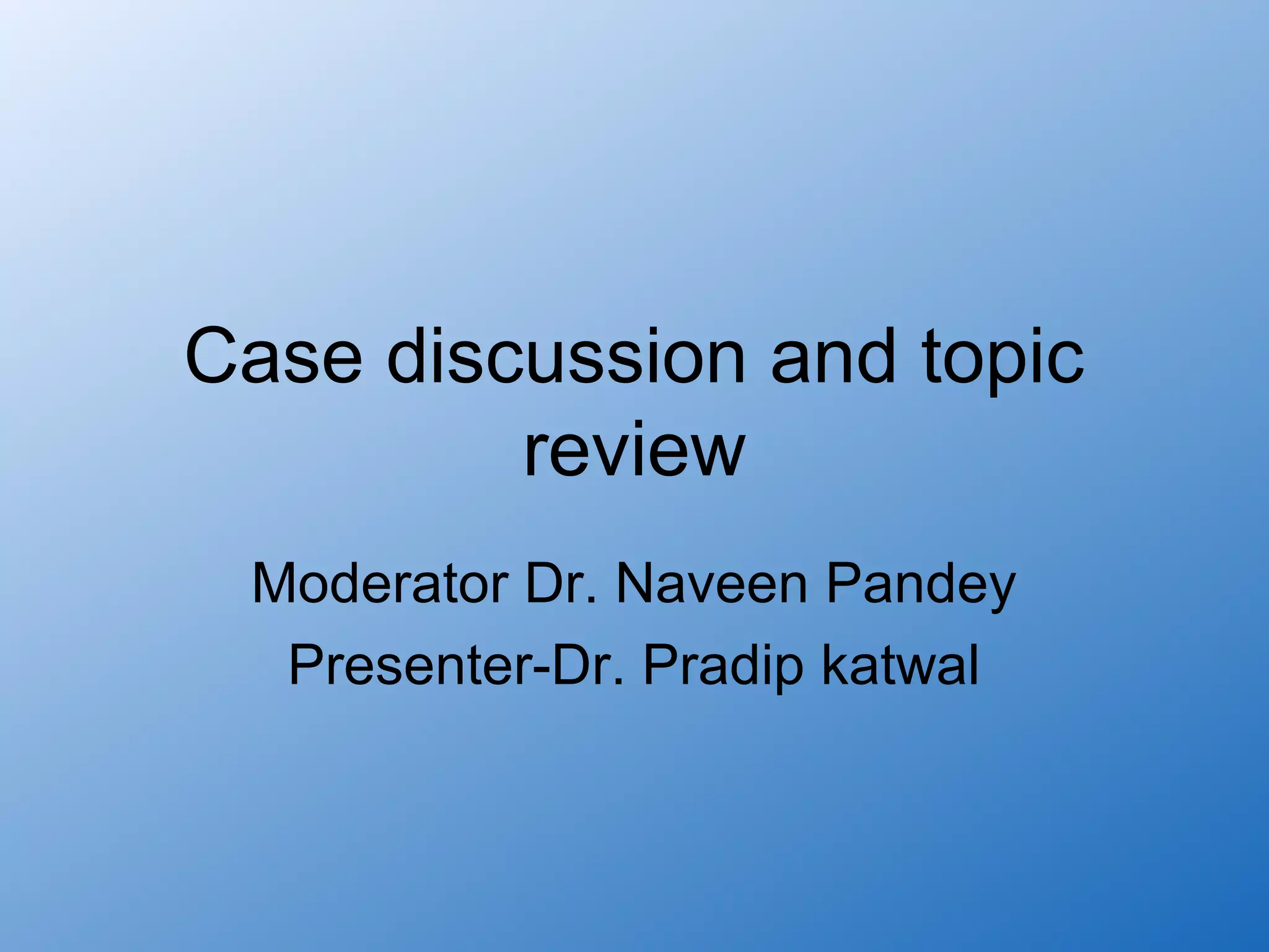 This document discusses the case of a 35-year-old female patient presenting with fever, fatigue, and shortness of breath. Her medical history includes a hysterectomy for menorrhagia and treatment for genitourinary tuberculosis. On examination, she has pallor and tachycardia. Laboratory tests show pancytopenia and blasts in her peripheral blood smear. A bone marrow biopsy confirms the diagnosis of acute myeloid leukemia. The discussion reviews the epidemiology, etiology, classification, clinical presentation, diagnostic workup, and initial treatment evaluation for AML.