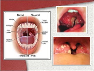 The document provides a comprehensive overview of acute tonsillitis, including its anatomy, functional importance in the immune system, epidemiology, etiology, signs and symptoms, classification, diagnosis, treatment, and complications. It highlights that Group A beta-hemolytic streptococcus is the most common bacterial cause, affecting mainly children aged 5 to 15. The document also describes a clinical case exemplifying the symptoms and treatment of bacterial tonsillitis.