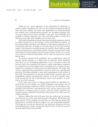This document provides an introduction to ad hoc networking. It discusses how mobile computing devices are increasingly being used and how users expect to remain connected to applications and the internet at all times. Ad hoc networks allow wireless devices to directly communicate even when no centralized infrastructure or routers are present by forming a multi-hop network between devices. The document outlines a general model of operation for ad hoc networks and discusses factors like symmetric vs asymmetric links and proactive vs reactive routing protocols.