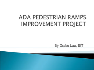 This document summarizes an analysis of curb ramp accessibility that evaluated 107 curb ramps across three locations based on Caltrans standards. It assessed the condition of the curb ramps and found that 12 were excellent, 63 were good, 20 were fair, and 12 were poor. The analysis aims to identify high priority locations for curb ramp improvements given limited budget constraints and ensure accessibility for people with mobility difficulties.