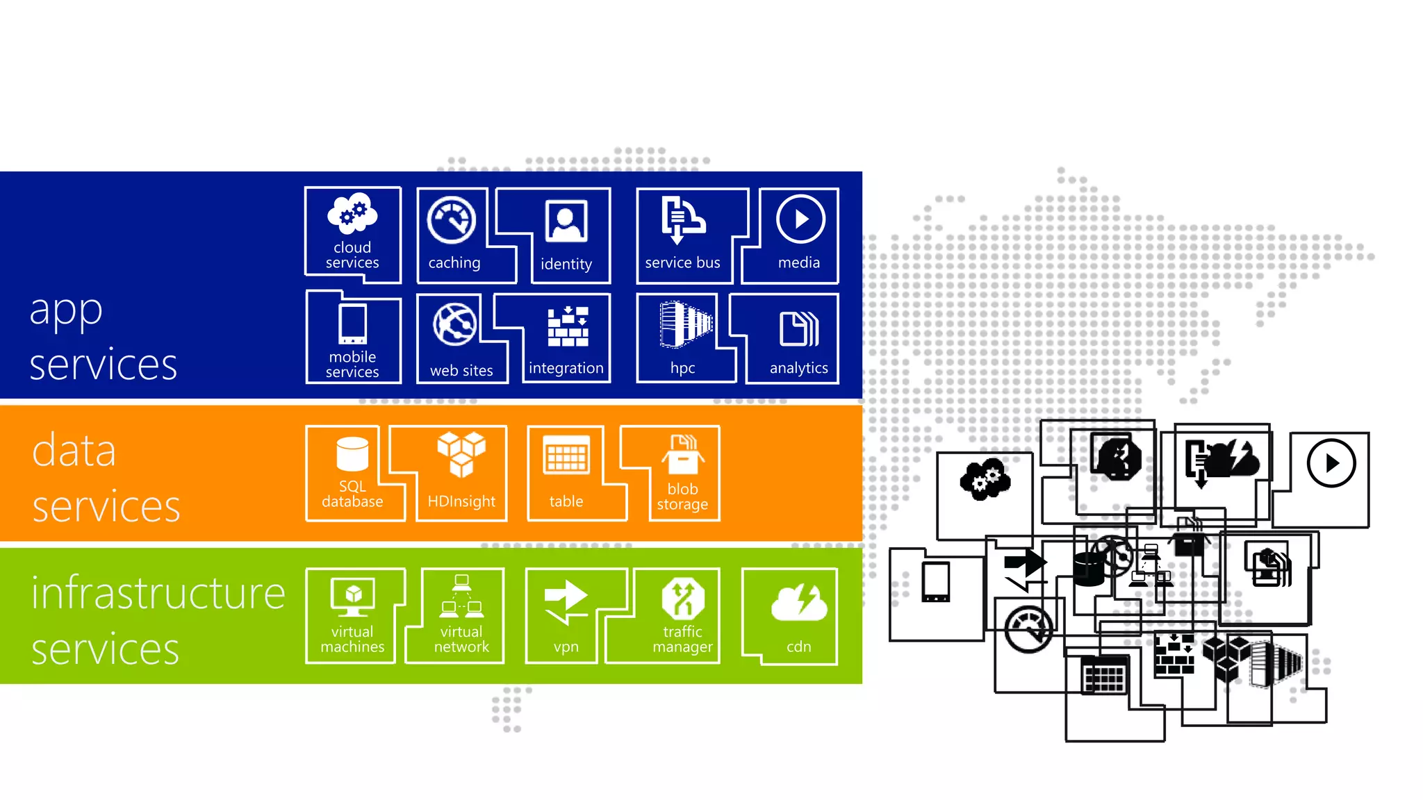 This document discusses Microsoft Azure and its capabilities. It highlights that Azure has over 100 datacenters globally, with 19 regions currently online. It also notes that Azure has one of the top 3 networks in the world and offers larger VM sizes than AWS or Google Cloud. The document then summarizes some of Azure's core capabilities like compute, storage, databases, analytics and more. It provides examples of how customers can use Azure's tools and services.