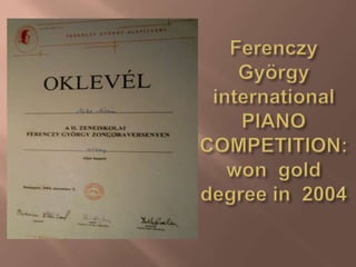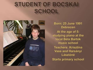 Adam began studying piano at age 5 at the local Béla Bartók music school in Debrecen, Hungary. By age 6, he wrote his first musical composition. Some of his notable works include Őrláng, Főnixmadár, Izrael rockoratórium, and the rock musicals Zéta and Testhalom. He won a gold degree at the Ferenczy György International Piano Competition in 2002.