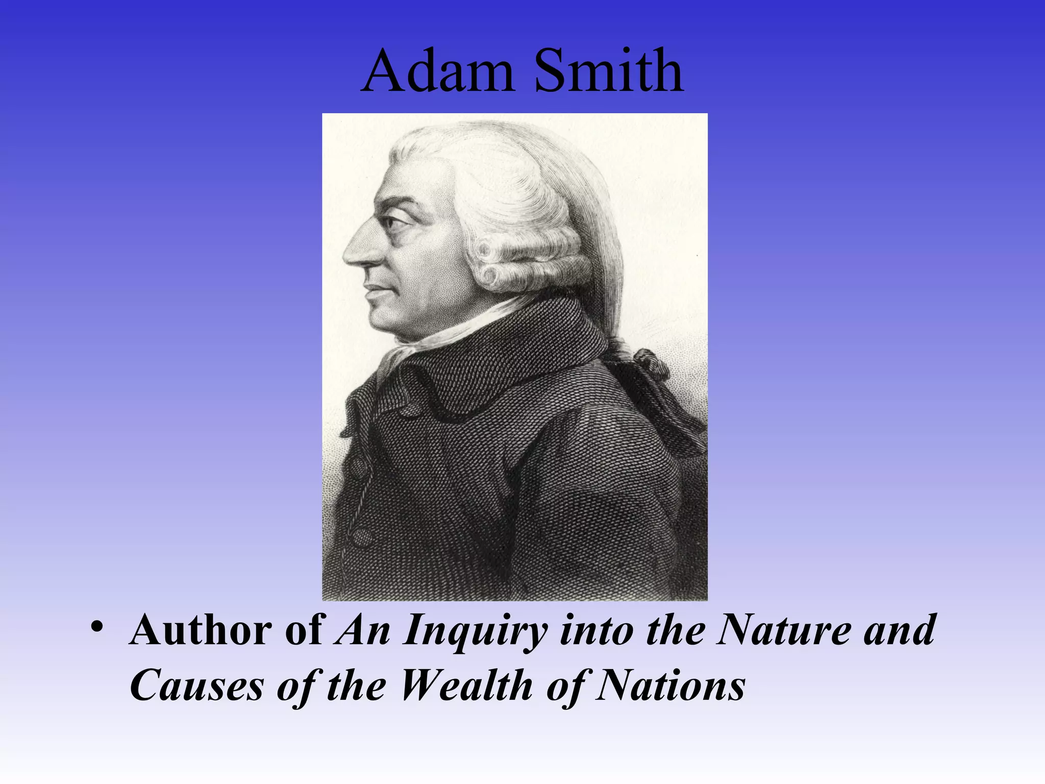 Adam Smith was the author of An Inquiry into the Nature and Causes of the Wealth of Nations and developed key economic concepts including the invisible hand, private property rights, division of labor, laissez-faire policies, and free trade. He argued that when individuals act in their own self-interest through free markets and specialization of labor, it indirectly promotes the greater good of society as a whole.