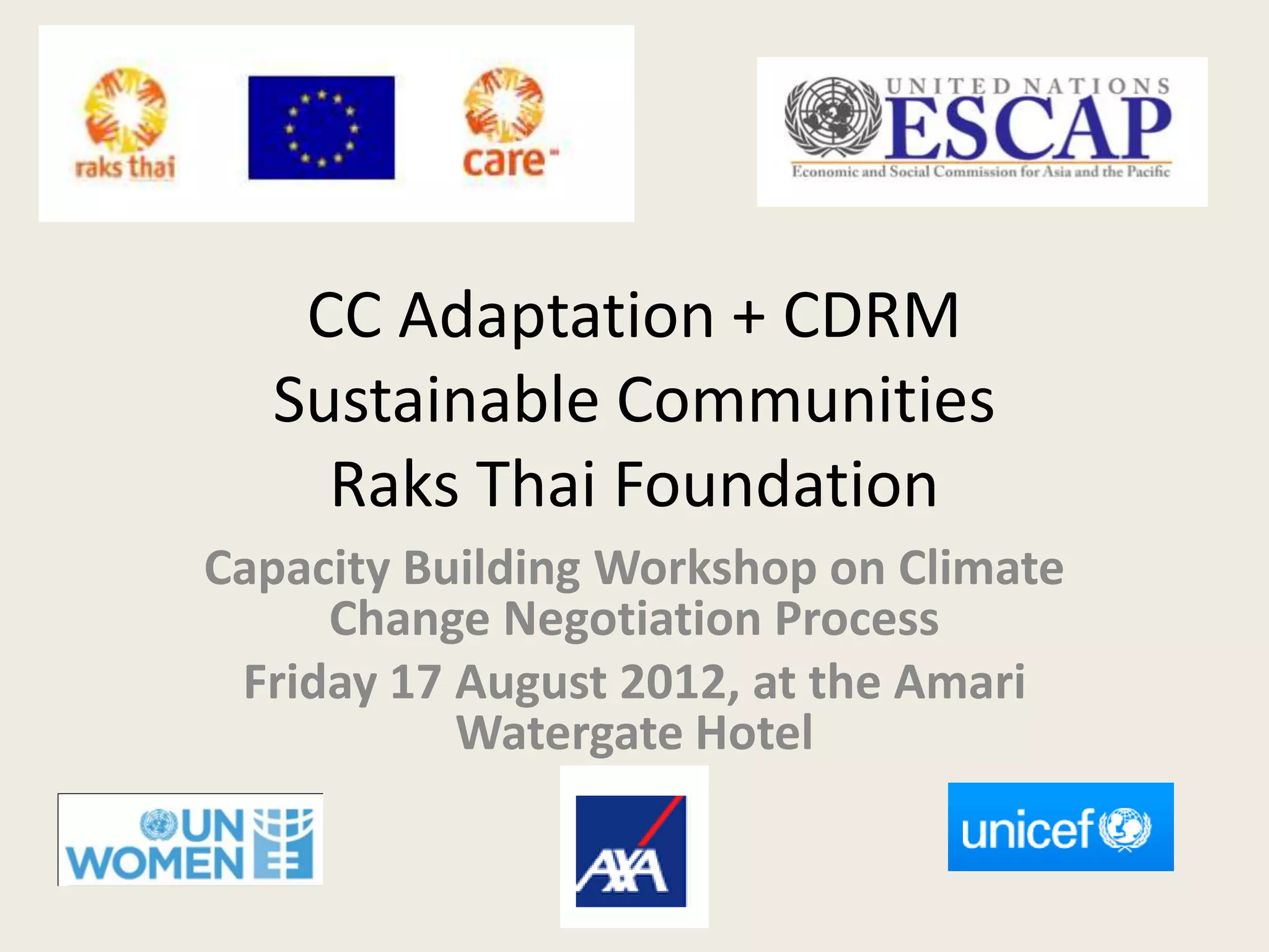 1) The document summarizes a capacity building workshop held by Raks Thai Foundation on climate change negotiation processes.