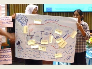 3) The workshop discussed case studies of community-based disaster risk management (CBDRM) in two districts in Krabi Province, including the multi-hazard impacts faced by communities and CBDRM project activities implemented in response.