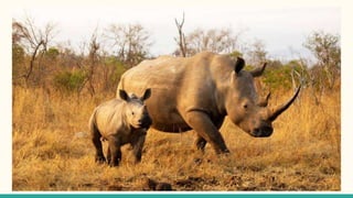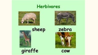 Animals adapt to their environments to survive, finding food, shelter, and protection from predators. They can be classified based on habitat (terrestrial, aquatic, amphibian, arboreal, and aerial) and food habits (herbivores, carnivores, omnivores, and scavengers). Conservation efforts are crucial as many species face extinction due to hunting, habitat loss, and climate change.