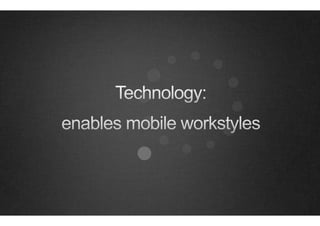 The document discusses the benefits of an adaptive workplace that provides flexibility for employees to work from different settings and locations. It argues that an adaptive workplace can attract and retain top talent, foster collaboration and innovation, support different workstyles, and reduce a company's carbon footprint. Specific benefits mentioned include meaningful collaboration happening spontaneously, expressing organizational culture, and reducing real estate costs by de-linking physical space needs from employee headcount.