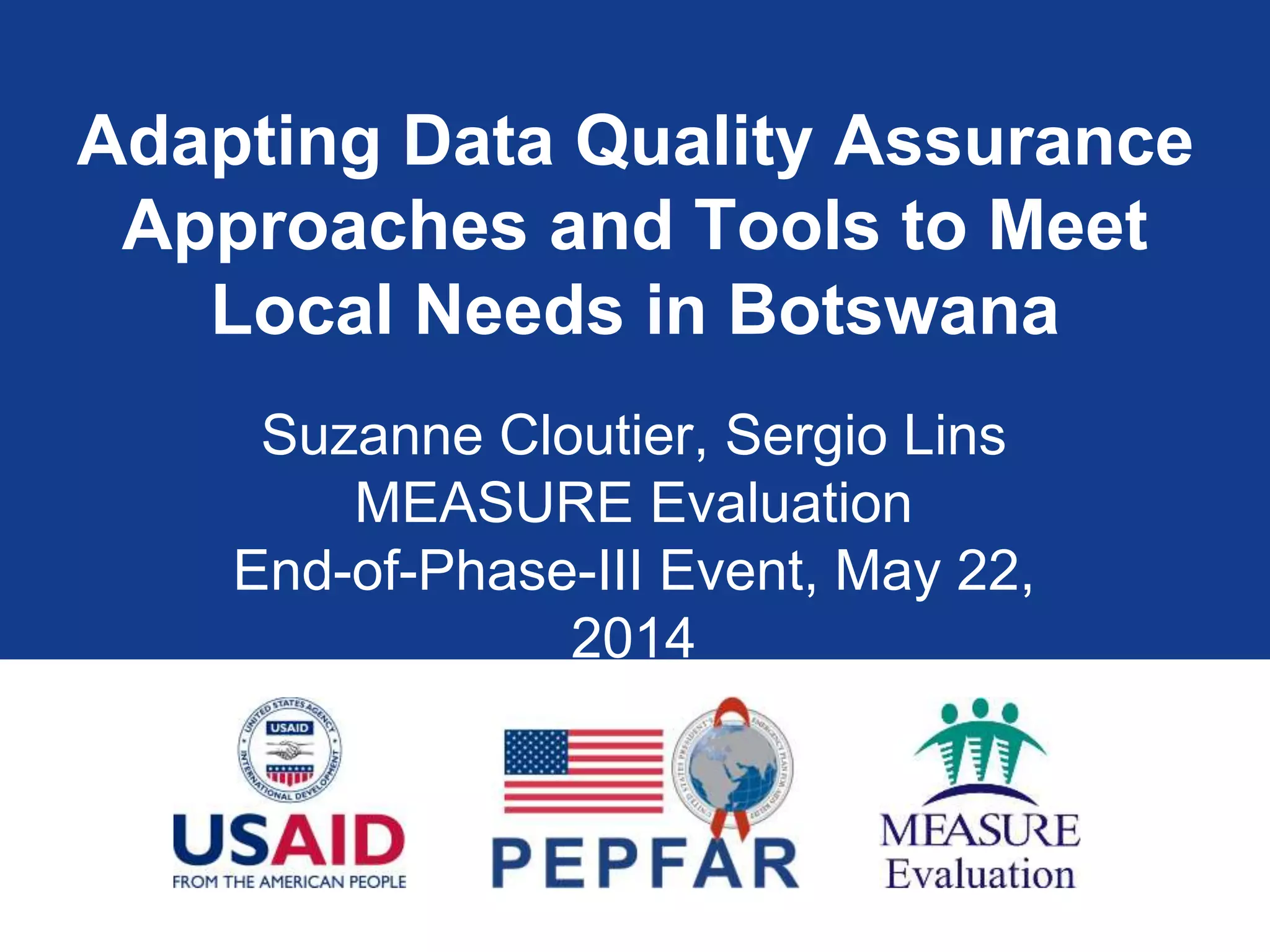 The document discusses data quality assurance approaches and tools tailored to local needs in Botswana and Tanzania, emphasizing the importance of accurate data for monitoring and evaluation systems. It highlights various tools such as the Routine Data Quality Assessment (RDQA) and examples of adaptation in data collection and training. Key successes include the institutionalization of data quality assessments and training for district health management teams to enhance data-driven decision-making.