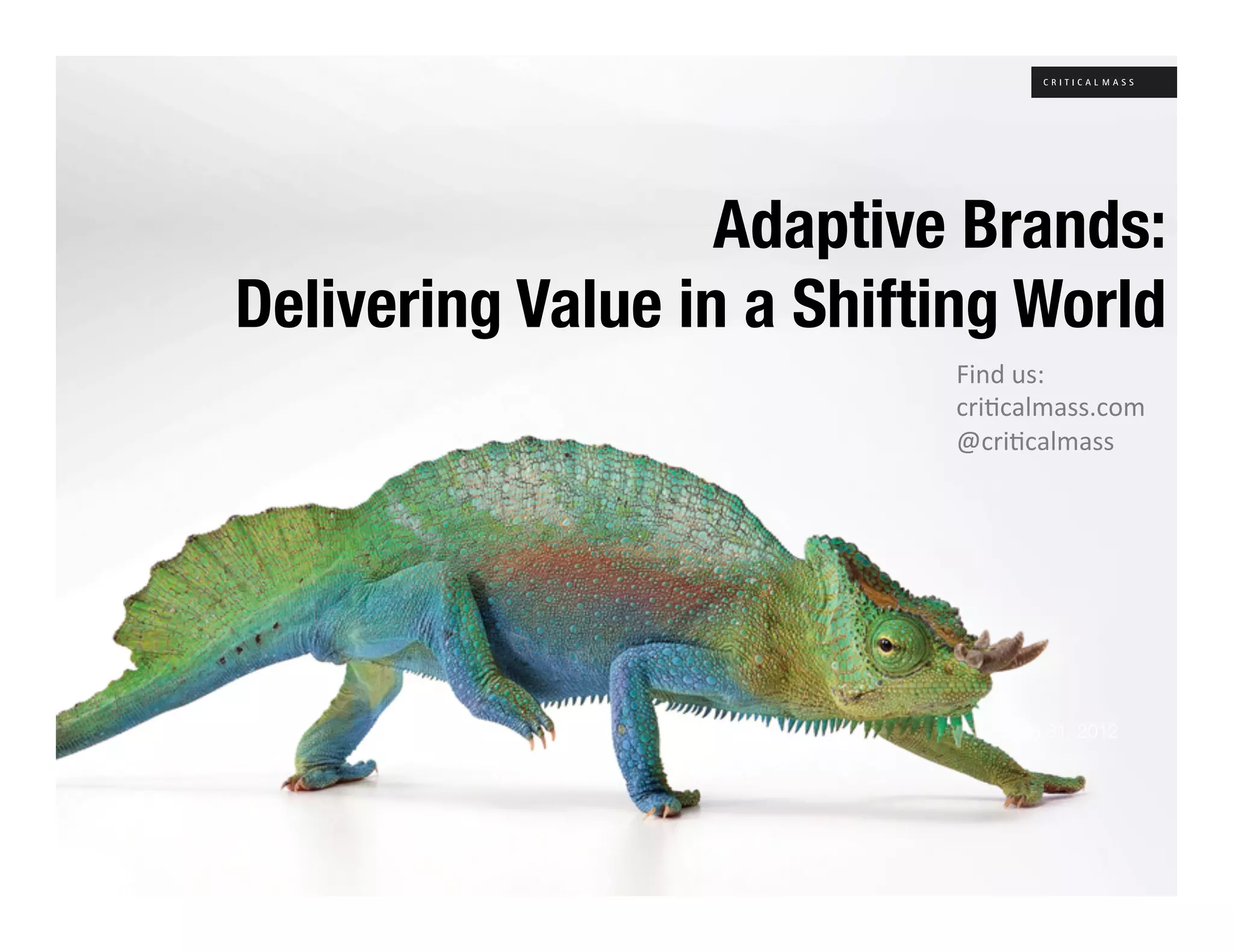 The document discusses the evolution of marketing and the need for brands to adapt to the changing digital landscape. It emphasizes the significance of new strategies, such as focusing on consumer insights, embracing technology, and developing personal connections with customers. The text outlines the necessary attributes of adaptive brands, including being productive, principled, and progressive, while prioritizing value creation and contextual relevance.
