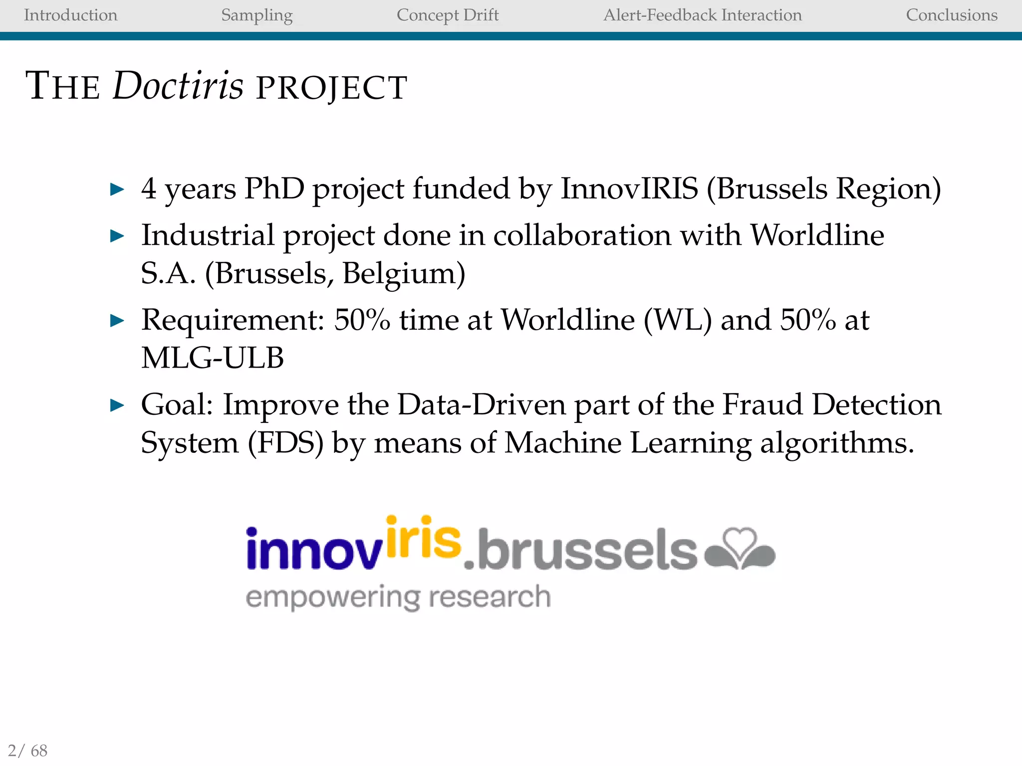 This document discusses machine learning techniques for credit card fraud detection. It addresses challenges like concept drift, imbalanced data, and limited supervised data. The author proposes contributions in learning from imbalanced and evolving data streams, a prototype fraud detection system using all supervised information, and a software package/dataset. Methods discussed include resampling techniques, concept drift handling, and a "racing" algorithm to efficiently select the best strategy for unbalanced classification on a given dataset. Evaluation measures the ability to accurately rank transactions by fraud risk.