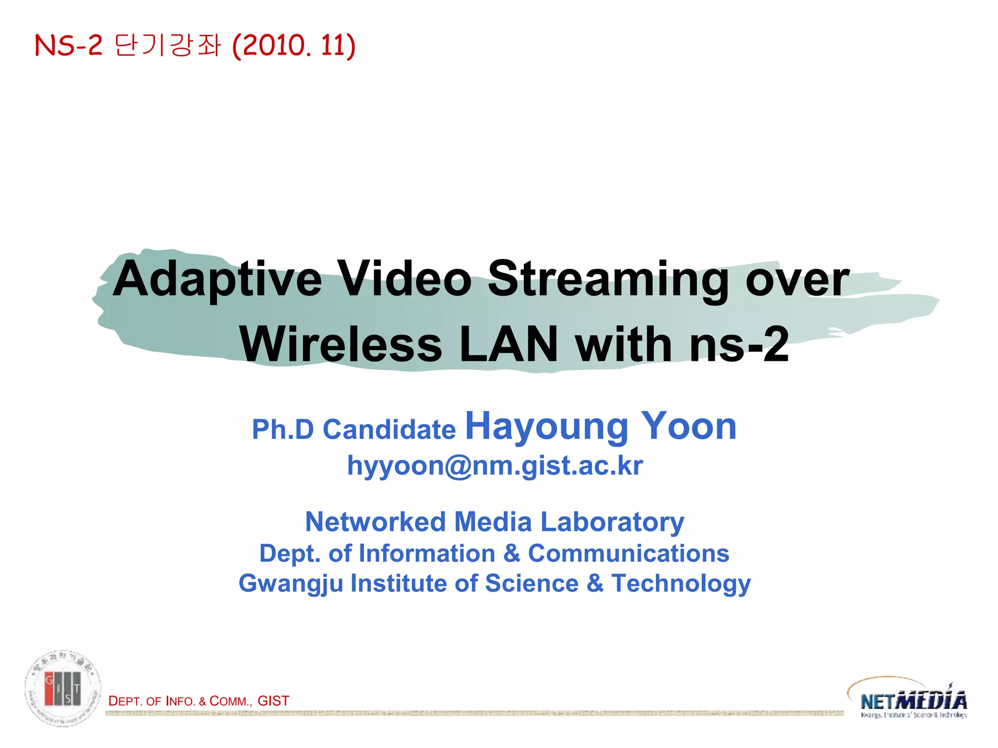 The document details the challenges and solutions of adaptive video streaming over wireless networks, particularly focusing on bandwidth limitations, quality of service, and packet loss. It outlines various methodologies for media delivery adaptation, including layered encoding, prioritization of packets, and real-time video adaptation techniques within a wireless mesh network framework. Experimental results and implementation strategies using ns-2 simulation tools are also discussed to enhance video streaming performance over WLAN and WMN environments.