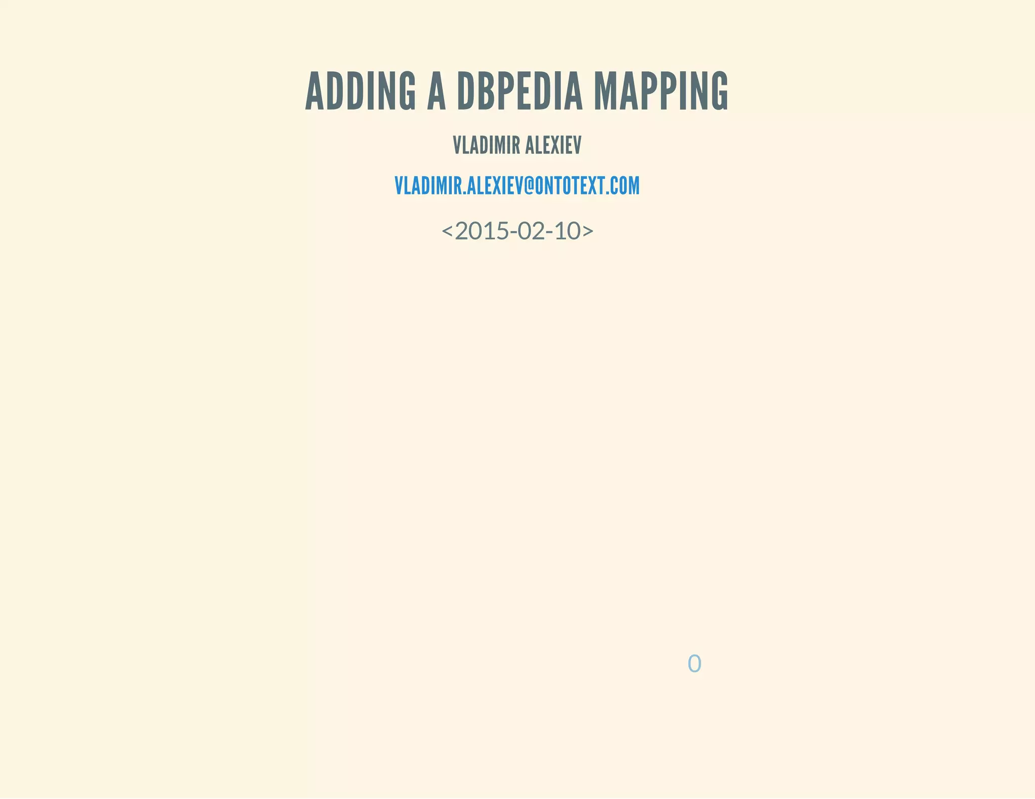 The document outlines the steps for adding a DBpedia mapping, detailing the preparation, template selection, property searching, and mapping completion processes. It highlights the use of tools such as Chrome plugins and text editors to facilitate mapping and discusses the need for tracking issues related to property usage. The document serves as a practical guide for creating and testing mappings for semantic data models.