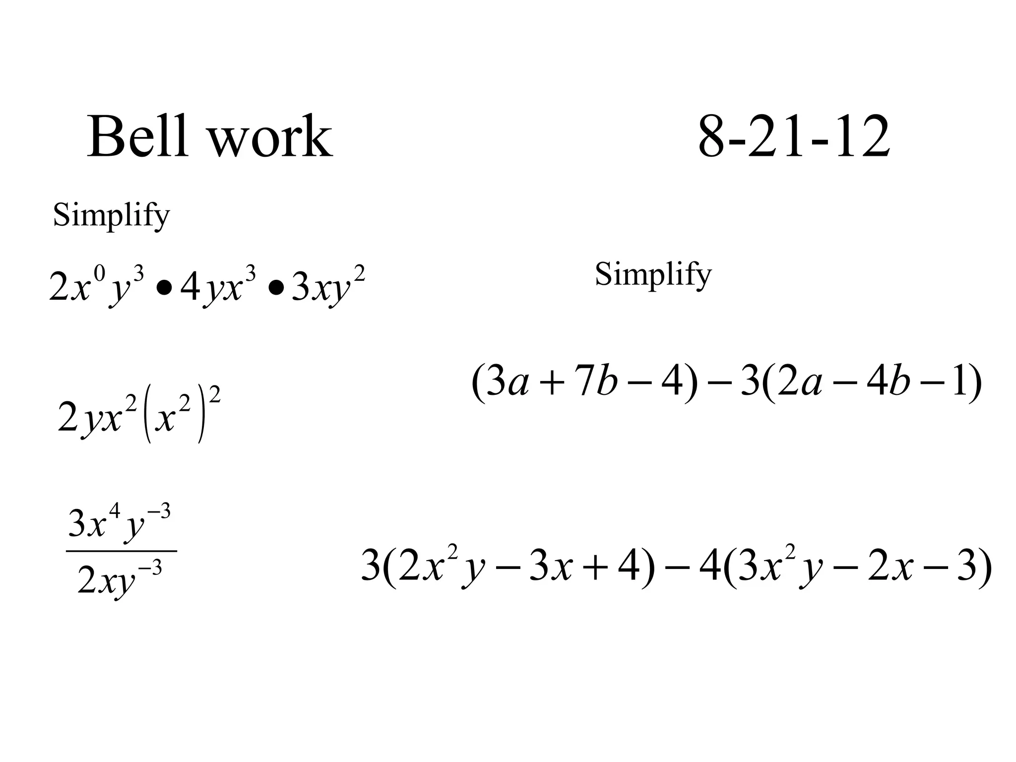 This document provides instruction on adding, subtracting, and finding the degree of polynomials. It includes examples of combining like terms, arranging polynomials in ascending and descending order, finding the degree of monomials and polynomials, and solving problems involving adding and subtracting polynomials. The objectives are for students to be able to find the degree of a polynomial, arrange terms in ascending or descending order, and add and subtract polynomials.