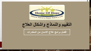تناقش الوثيقة حول أفضل برامج علاج الإدمان وتقييم نماذج العلاج، حيث تتضمن تحديد استخدام المواد المخدرة وتقييم الوضع النفسي والصحي للمدمنين. كما تركز على أهمية تقييم الدافعية للمريض ووجود الدعم المجتمعي والموارد اللازمة. تقدم الوثيقة أيضًا نماذج متعددة للعلاج وتناقش الأبعاد المختلفة للعلاج الإدماني.
