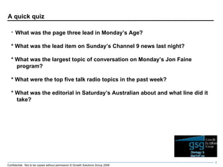 The document discusses communication strategies for public figures who are obsessed with media coverage. It suggests that issues management, rather than reactive media responses, is a better approach. Regular issues monitoring and stakeholder analysis can help anticipate problems and prevent crises. Framing issues strategically and maintaining open communication with stakeholders is important for managing media attention in a controlled manner.