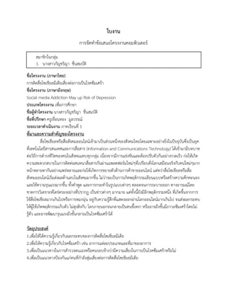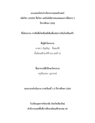 ชื่อโครงงาน การติดสื่อโซเชียลมีเดียเสี่ยงต่อการเป็นโรคซึมเศร้า