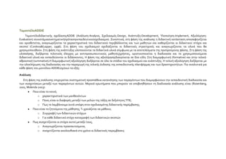 To μοντέλο ADDIE<br/>Το μοντέλο διδακτικής σχεδίασης ADDIE (Ανάλυση-Analysis, Σχεδιασμός-Design, Ανάπτυξη-Development, Υλοποίηση-Implement, Αξιολόγηση-Evaluation) συνιστά μια συστηματική πρόταση εκπαιδευτικού σχεδιασμού. Συνοπτικά, στη φάση της ανάλυσης η διδακτική κατάσταση αποσαφηνίζεται και οριοθετείται, αναγνωρίζονται τα χαρακτηριστικά του διδακτικού περιβάλλοντος και των μαθητών και καθορίζονται οι διδακτικοί στόχοι και σκοποί (Cordova & Lepper, 1996). Στη φάση του σχεδιασμού σχεδιάζονται οι διδακτικές στρατηγικές και αναγνωρίζονται τα υλικά που θα χρησιμοποιηθούν. Στη φάση της ανάπτυξης υλοποιούνται τα διδακτικά υλικά σύμφωνα με τα αποτελέσματα της προηγούμενης φάσης. Στη φάση της υλοποίησης, διεξάγεται πιλοτικός έλεγχος με αντιπροσωπευτικούς μαθητές/χρήστες, οριστικοποιείται η διαδικασία και τα χρησιμοποιούμενα διδακτικά υλικά και εκπαιδεύονται οι διδάσκοντες. Η φάση της αξιολόγησης διακρίνεται σε δύο είδη: Στη διαμορφωτική (formative) και στην τελική-αθροιστική (summative). Η διαμορφωτική αξιολόγηση διεξάγεται σε όλα τα στάδια του σχεδιασμού και ανάπτυξης. Η τελική αξιολόγηση διεξάγεται με την ολοκλήρωση της διαδικασίας και την παραγωγή της τελικής έκδοσης της εκπαιδευτικής πλατφόρμας και των δραστηριοτήτων. Πιο αναλυτικά για κάθε φάση του μοντέλου ADDIE ισχύουν τα εξής:<br />Ανάλυση<br />Στη φάση της ανάλυσης επιχειρείται συστηματική προσπάθεια κατανόησης των παραγόντων που διαμορφώνουν την εκπαιδευτική διαδικασία και των συσχετίσεων μεταξύ των παραγόντων αυτών. Μερικά ερωτήματα που μπορούν να υποβοηθήσουν τη διαδικασία ανάλυσης είναι (Rosenberg, 2001, Molenda 2003):<br />Ποιο είναι το κοινό;