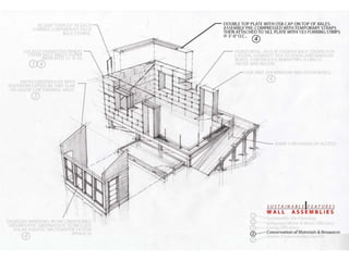 This document describes the Straw-Bale Eco-Center project at Ball State University, which involved students and faculty demonstrating sustainable building techniques. It summarizes: