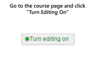 To add a URL to a course page, turn editing on and click "Add an Activity or Resource", then select "URL" and fill in the name, description and external URL before saving and returning to the course.