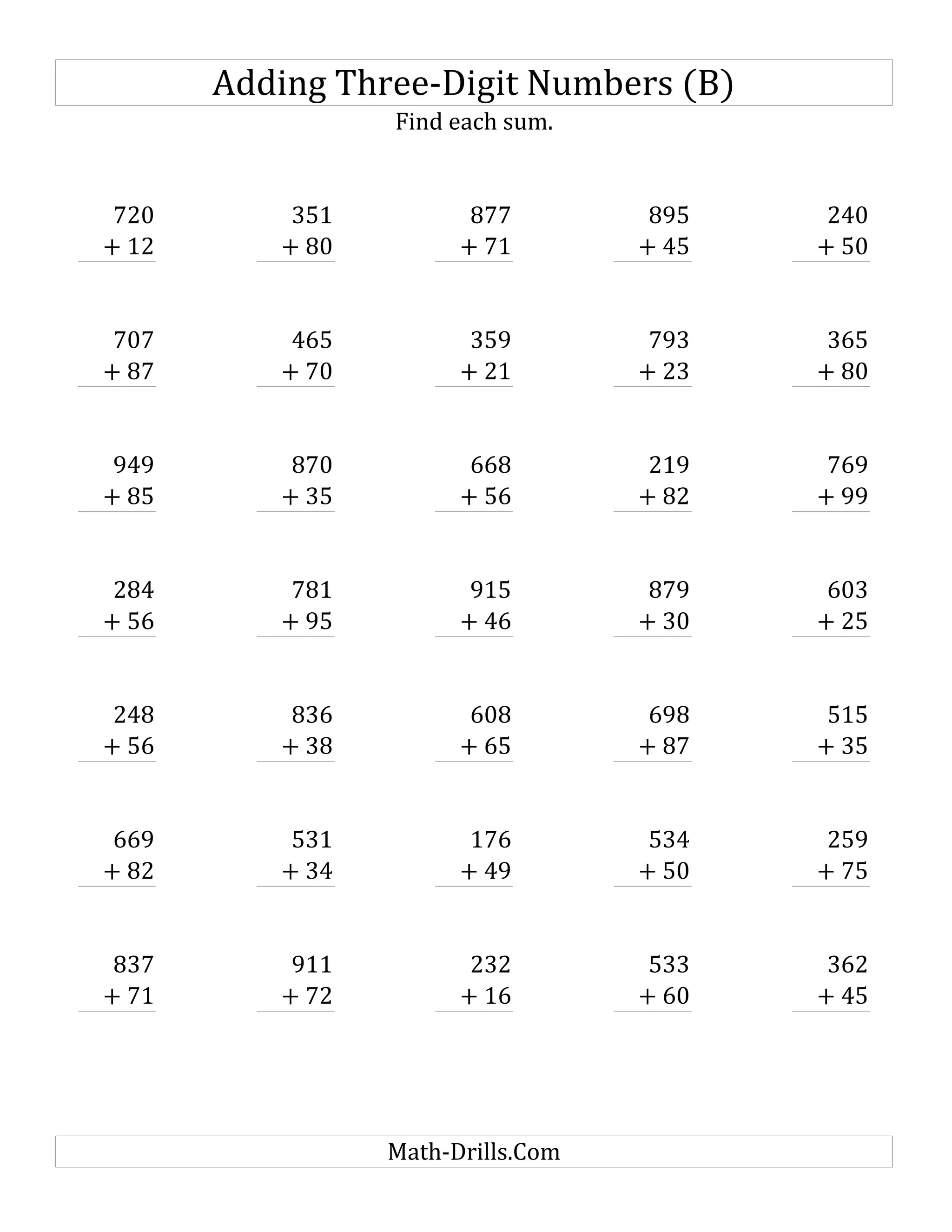 (B) Find each sum. 720 351 877 895 240 + 12 + 80 + 71 + 45 + 50 707 465 359 793 365 + 87 + 70 + 21 + 23 + 80 949 870 668 219 769 + 85 + 35 + 56 + 82 + 99 284 781 915 879 603 + 56 + 95 + 46 + 30 + 25 248 836 608 698 515 + 56 + 38 + 65 + 87 + 35 669 531 176 534 259 + 82 + 34 + 49 + 50 + 75 837 911 232 533 362 + 71 + 72 + 16 + 60 + 45 Math-Drills.Com