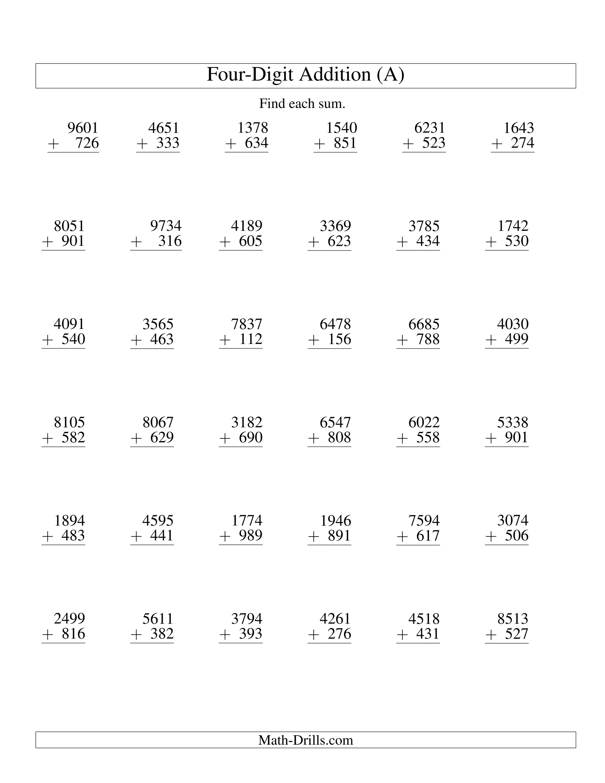 Four-Digit Addition (A) Find