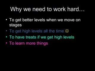 This document provides a series of math practice problems for students to work on for an upcoming test. It includes times tables, subtraction, addition, and squaring problems. It encourages students to work hard to improve their skills and advance to higher levels, while also having rewards. The document was created by a teacher and donated to a free teaching resource website for other educators to use.