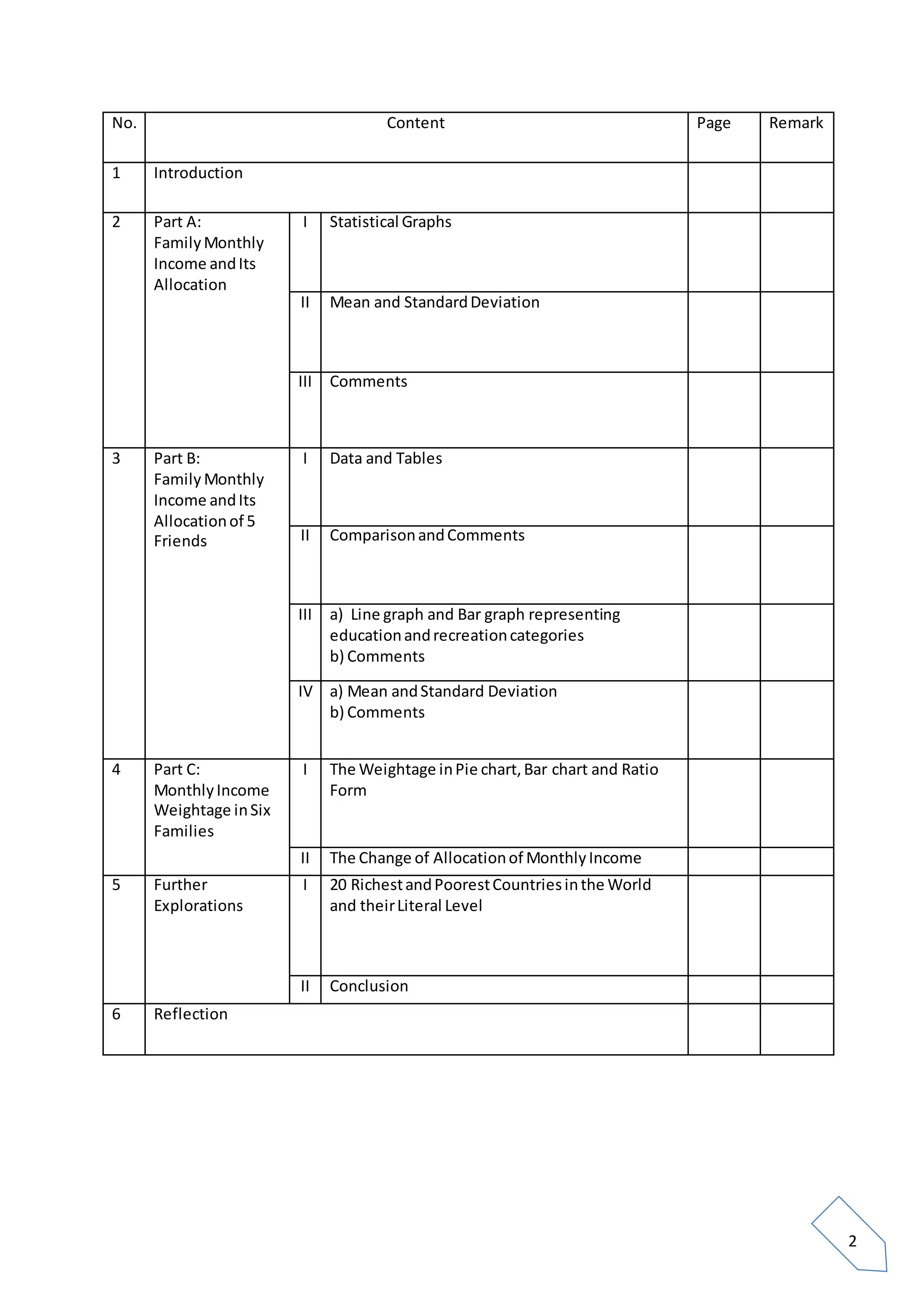 1) Analysis of the student's family monthly income allocation using graphs, mean, and standard deviation.