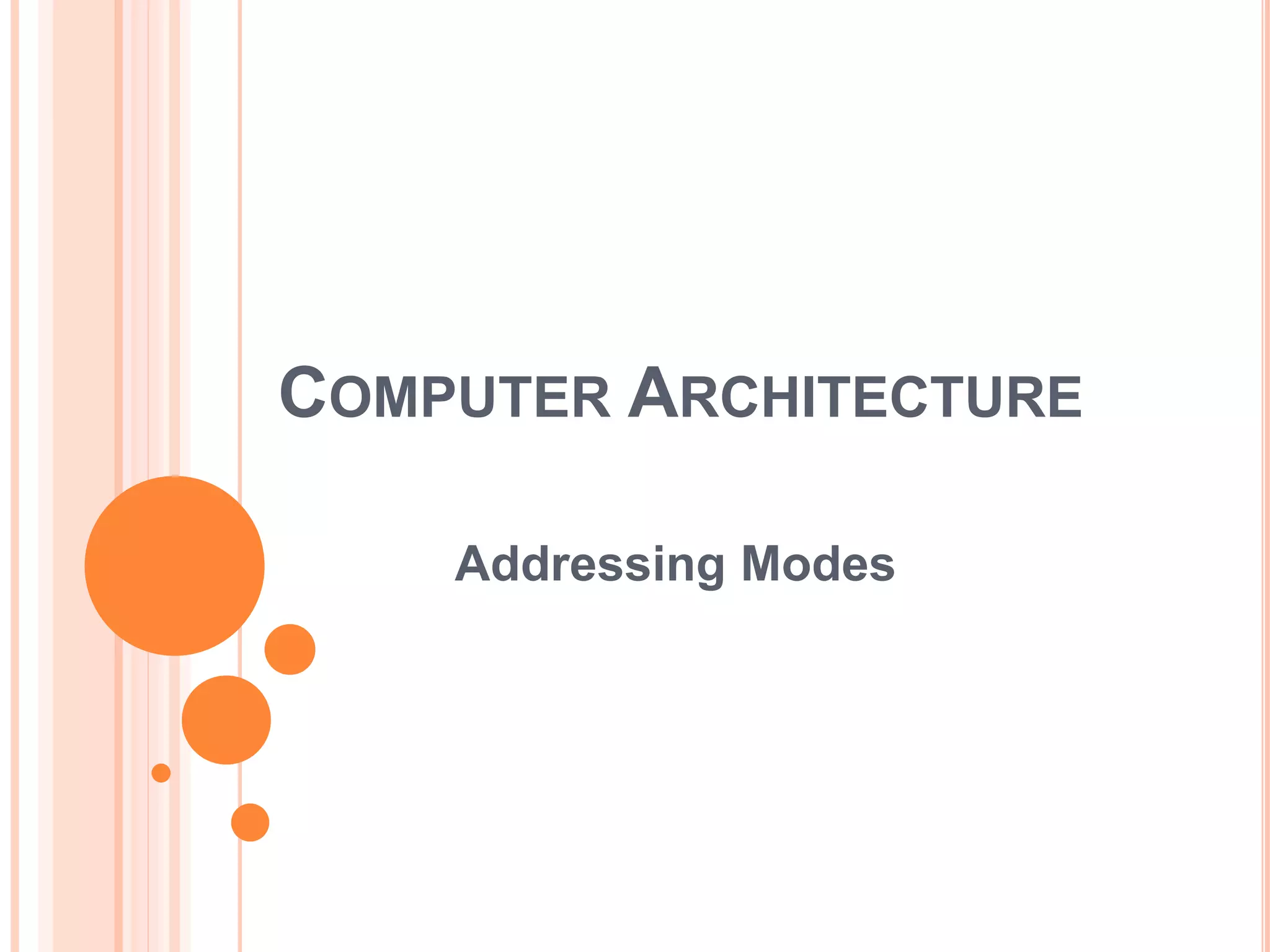 Addressing modes specify rules for interpreting or modifying instruction addresses to reference operands. There are several types of addressing modes including implied, where operands are specified implicitly; immediate, where the operand is in the instruction; and register, register indirect, direct, indirect, base register, relative, indexed, auto increment, and autodecrement addressing modes. Examples are provided to illustrate how each mode calculates the effective address.