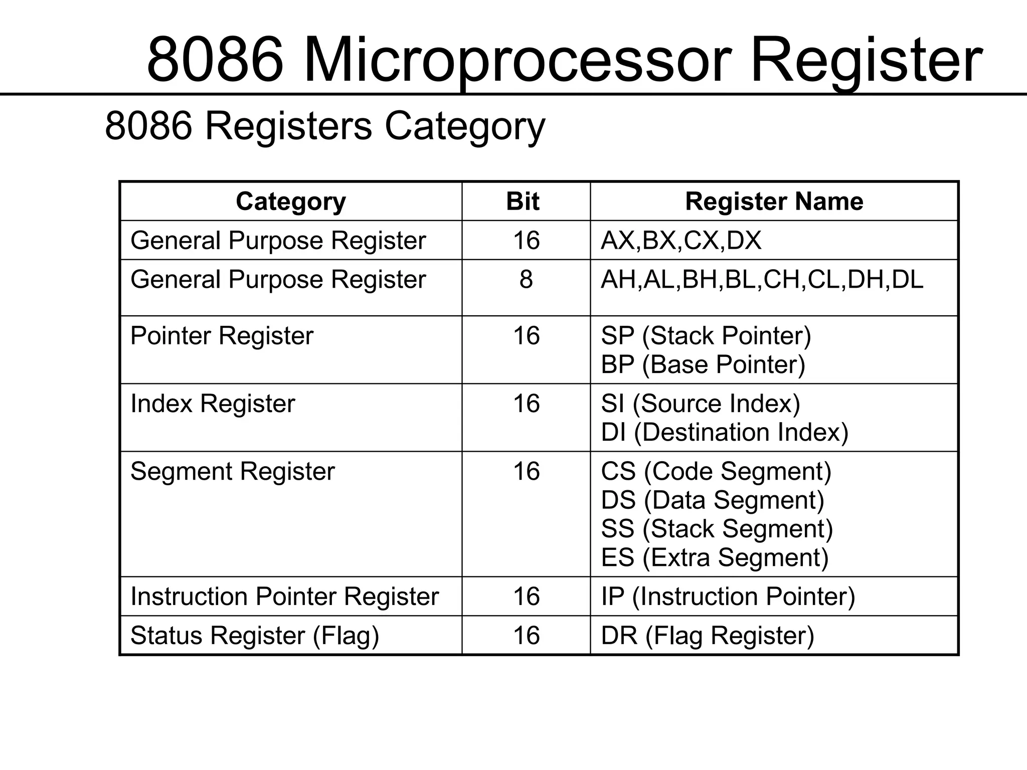 General Purpose Register 8 AH,AL,BH,BL,CH,CL,DH,DL