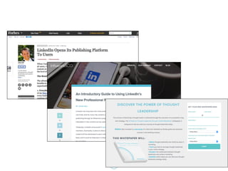The document discusses the importance of thought leadership in content marketing, highlighting that 80% of business decision-makers prefer information in articles rather than ads. It outlines five key steps for getting published: documenting a content strategy, researching the target publication's audience, sharing personal expertise, backing content with data, and perfecting the piece. The document also emphasizes the benefits of contributed content from industry experts, with editors preferring such content for its relevance and credibility.