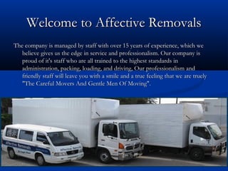 If you are in search of affordable yet professional furniture Removal Company, Affective Removals is a right station for you. We offer cost effective but wonderful services to our customers.
