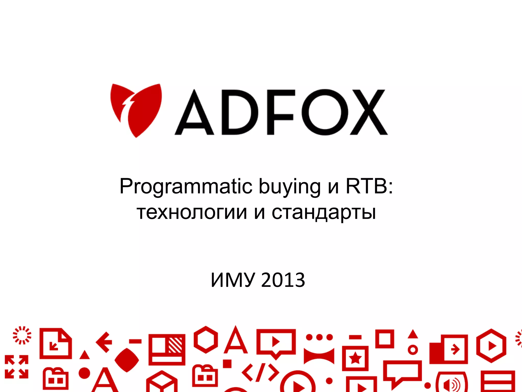 Документ обсуждает технологии программной закупки и RTB, разработанные компанией AdFox с целью автоматизации управления интернет-рекламой. В нем представлена иерархия продаж рекламы и различные виды программных продаж, такие как аукционные продажи и прямые продажи. Также акцентируется внимание на использовании протокола OpenRTB для взаимодействия между системами и текущие тенденции на рынке RTB в России и Европе.