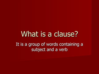 An adjective clause is a dependent clause that modifies a noun or pronoun in an independent clause. It uses pronouns like who, whom, whose, which, that to connect the dependent clause to the independent clause. Common pronoun patterns in adjective clauses include using "who" for people as subjects, "whom" or "that/which" for people as objects, and "whose" to modify possession. Adjective clauses add descriptive information about a person, place, or thing.