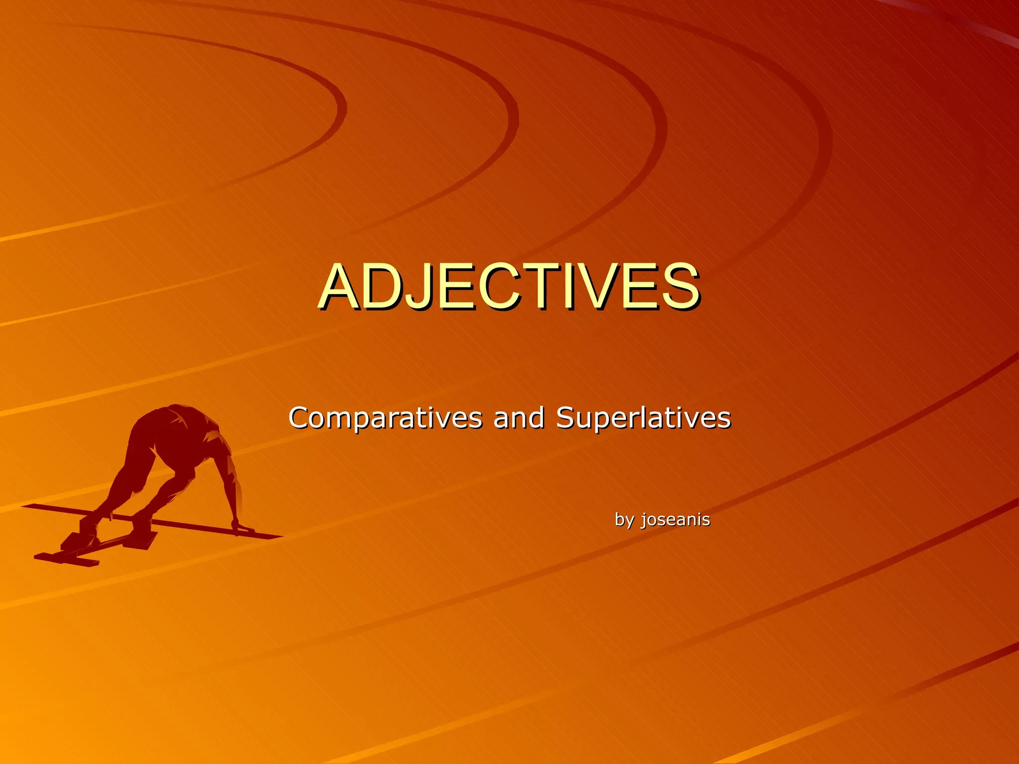 The document discusses how to form comparatives and superlatives of adjectives in English. It provides rules for making one-syllable adjectives comparative and superlative by adding -er and -est. For adjectives ending in consonant-vowel-consonant, the final consonant is doubled. Two-syllable adjectives ending in -y drop the -y and add -ier/-iest. Very and most are used with more descriptive adjectives. Than is used after comparatives and in or of after superlatives. Examples of mistakes in using comparatives and superlatives are provided.