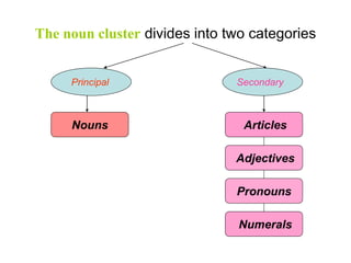 This document discusses different types of adjectives and how to use them correctly. It defines adjectives as words used to qualify or describe nouns. Adjectives are divided into two main categories: qualifying adjectives and determining adjectives. Qualifying adjectives can be used attributively or predicatively and can be compared using comparative and superlative forms with suffixes like -er/-est or more/most. Determining adjectives include possessive, demonstrative, interrogative, and relative adjectives. The document provides examples and guidelines for forming comparative and superlative adjectives regularly and irregularly. It also discusses the positioning of adjectives and differences in meanings between related terms.